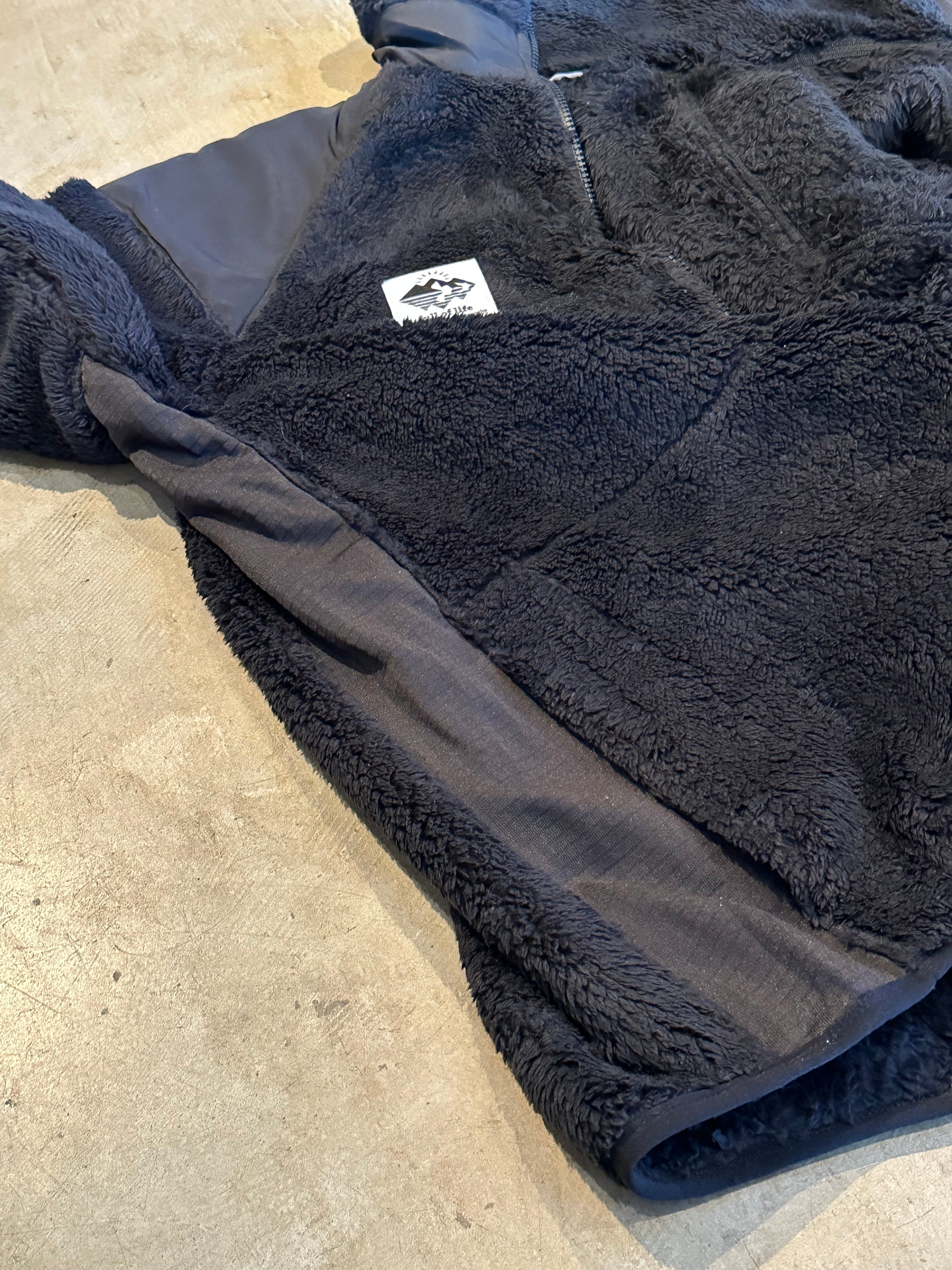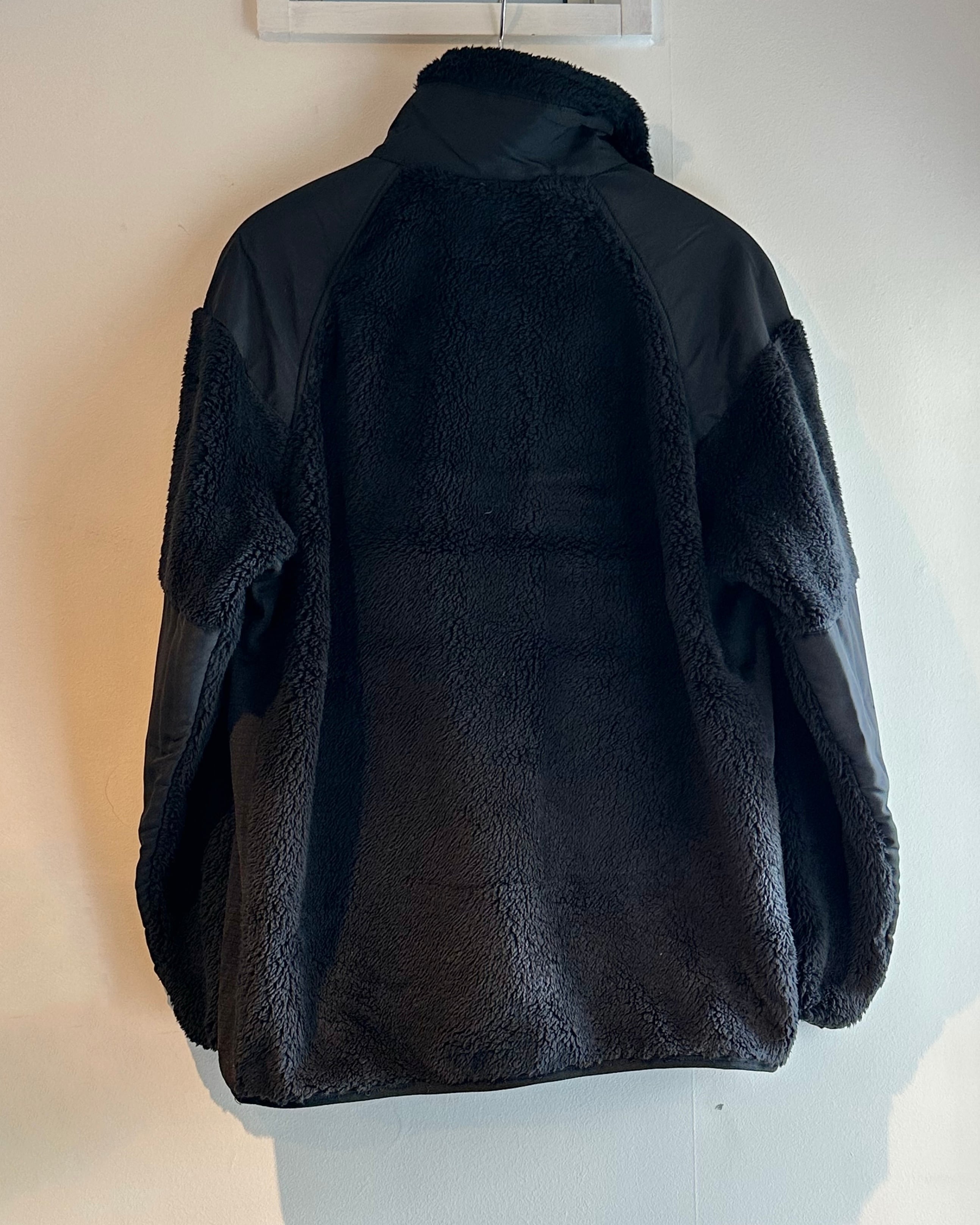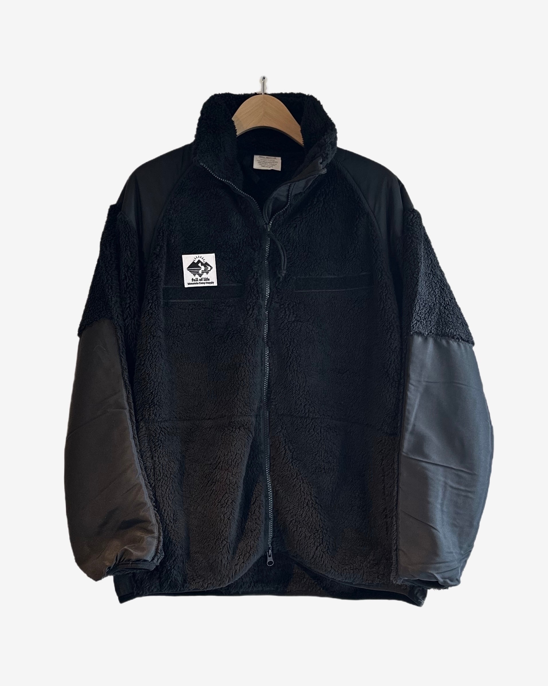 「ミリタリーのフリースジャケットにオリジナルワッペン付き」