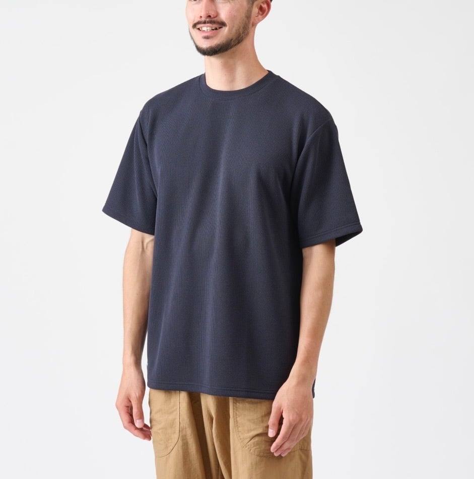 「体のシルエットを拾いにくいドライタッチな半袖ワッフルT 」