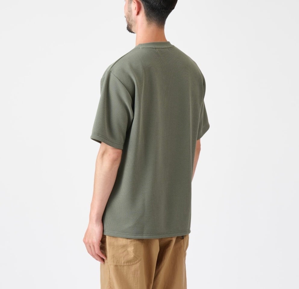 新緑のクラシックルートハイキングにピッタリなワッフル素材の半袖Tシャツです。
