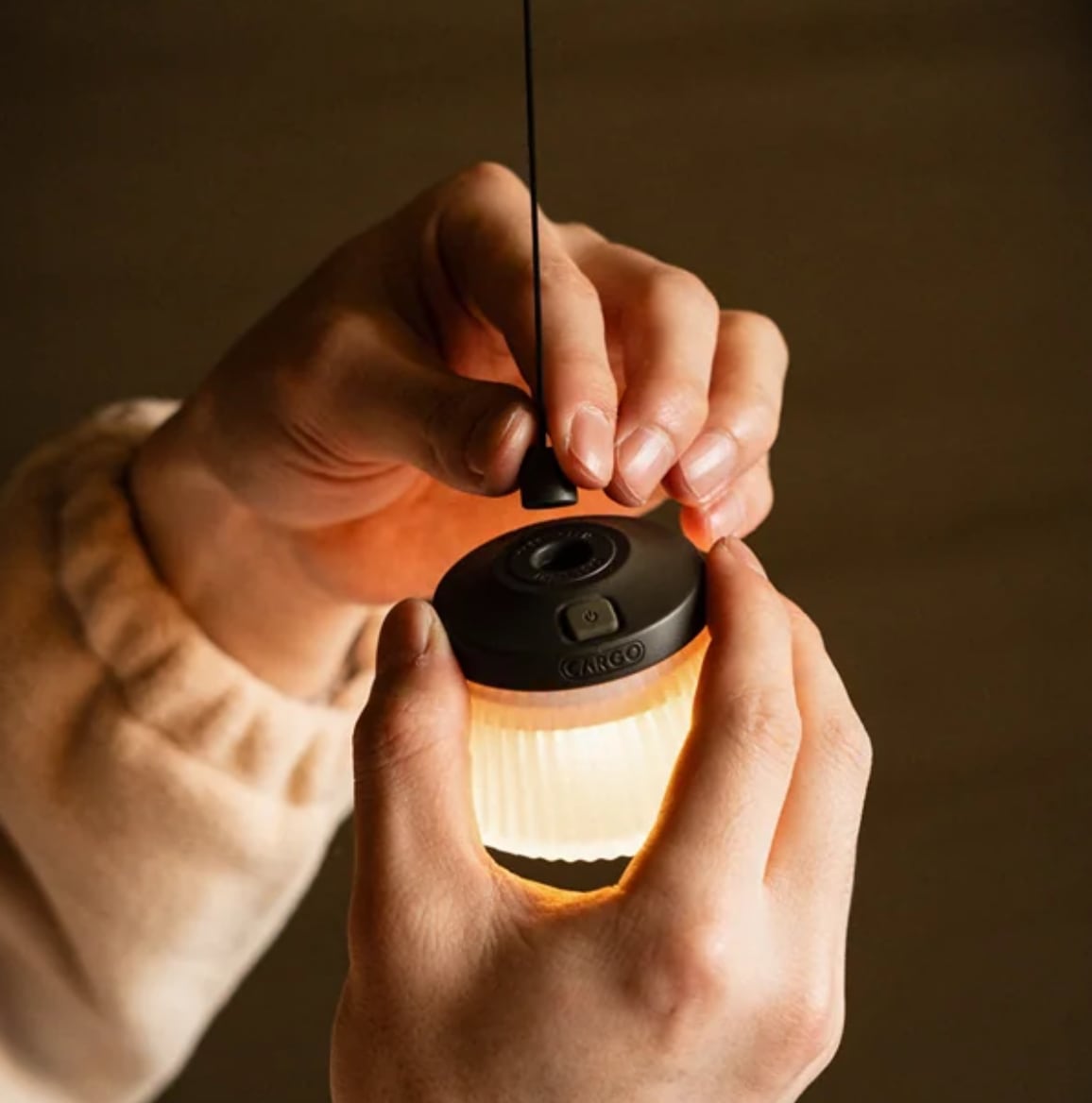 最長58cmまで伸びるリール構造で好きな高さで止められる間接照明におすすめのランタン。