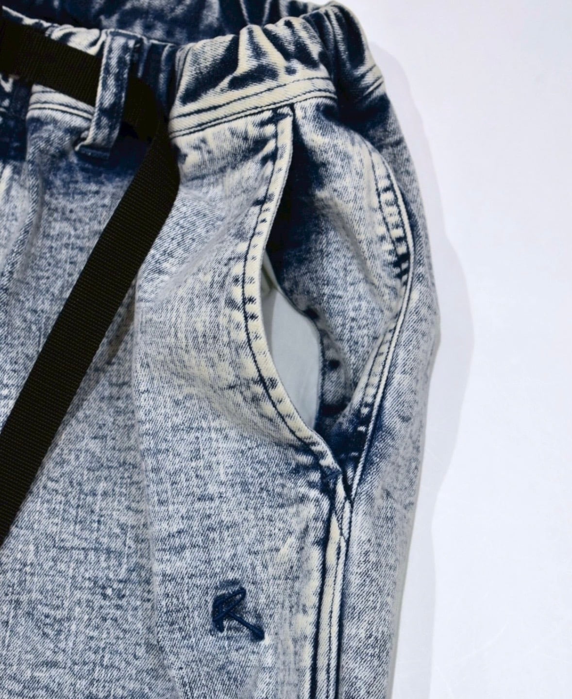 ROKXパンツのブランドの象徴的なガゼットクロッチ(股下が180°開く仕様)で可動性は抜群。