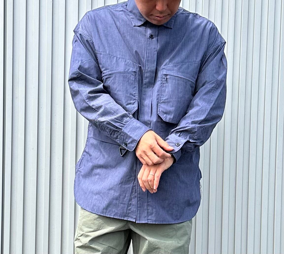 T/Cシャンブレー生地を採用した長袖シャツは、速乾性と強度に優れています。