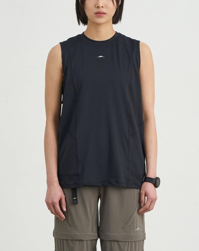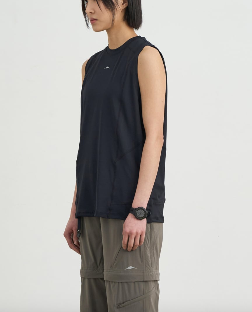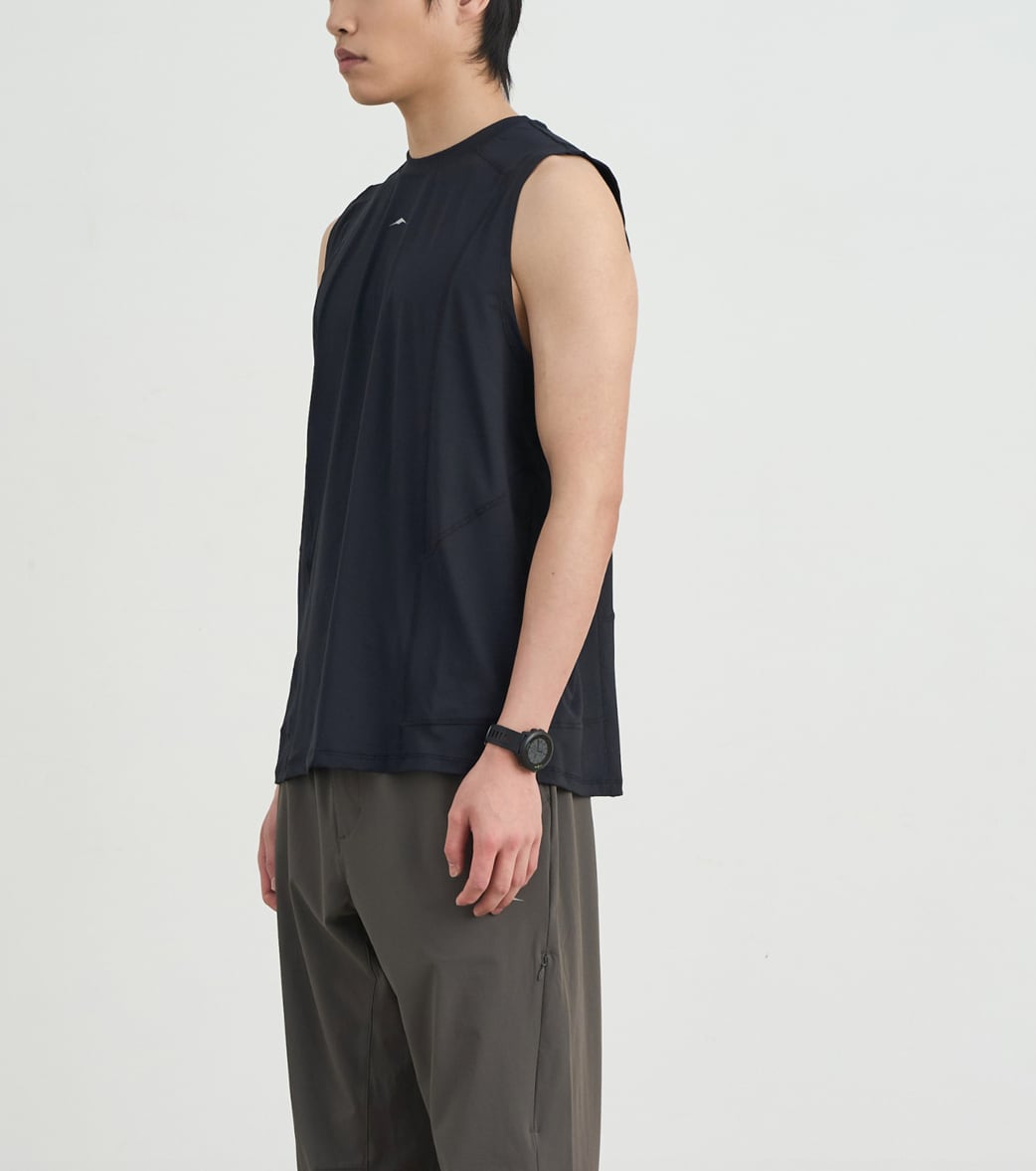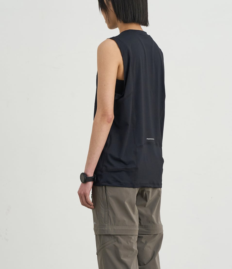 様々なアウトドアアクティビティのインナーとしておすすめの高機能なスリーブレスTシャツ。